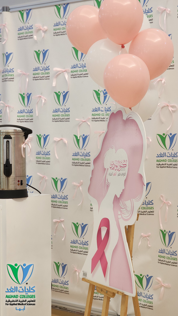 ضمن جهود كلية الغد للعلوم الطبية التطبيقية بأبها في تعزيز الوعي الصحي والمسؤولية المجتمعية، شاركت لجنة المسؤولية المجتمعية و لجنة التوعية الفكرية ونادي اللغة الإنجليزية بالتعاون مع جمعية زهرة لسرطان الثدي في تفعيل فعالية الشهر الوردي للتوعية بسرطان الثدي حيث أقامت برنامج بعنوان “التبكيرة خيرة”، وذلك يوم الخميس 30 أكتوبر في مقر الكلية، مستضيفة عدداً من طالبات الكلية وطالبات مدارس بناء الموهبة العالمية، تضمّن البرنامج عرضًا تقديميًا باللغة الإنجليزية بعنوان “Intellectual Awareness Against Breast Cancer ” تناول العلاقة بين الفكر الواعي والوقاية الصحية، إلى جانب التوعية بالمخاطر السلوكية وأهمية الفحص المبكر.